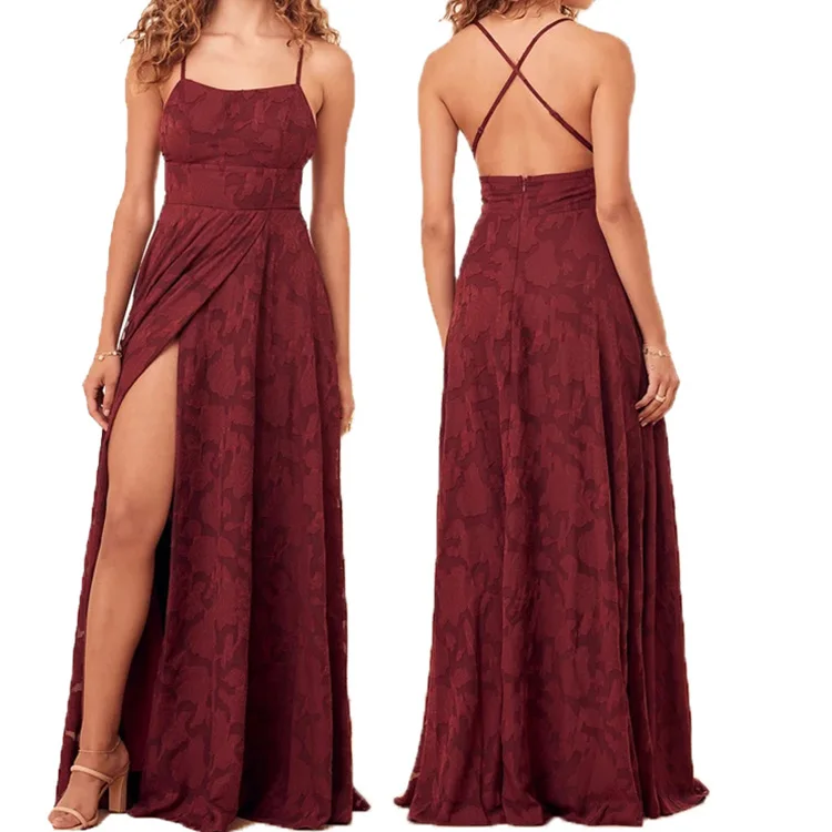 Women 2022 Wholesale Gorgeous Spaghetti Straps Halter High Slit Wedding Evening Party Long Summer Elegantlace Bridesmaid Dresses